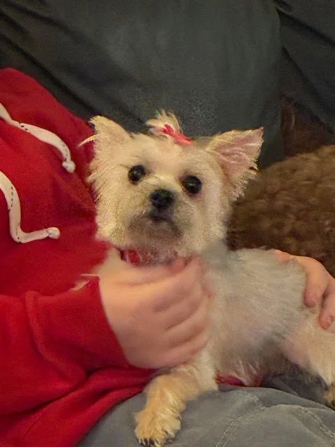 Koala is the sweetest little morkie girl at only six pounds! She is two years old, fully vetted, and very polite! This little girl loves nothing more than cuddling in a warm lap. She's ok with other dogs, and ok on her own, as long as she's with her person! Due to her size, we are asking that Koala goes to a home with older children. Her fee is $500.